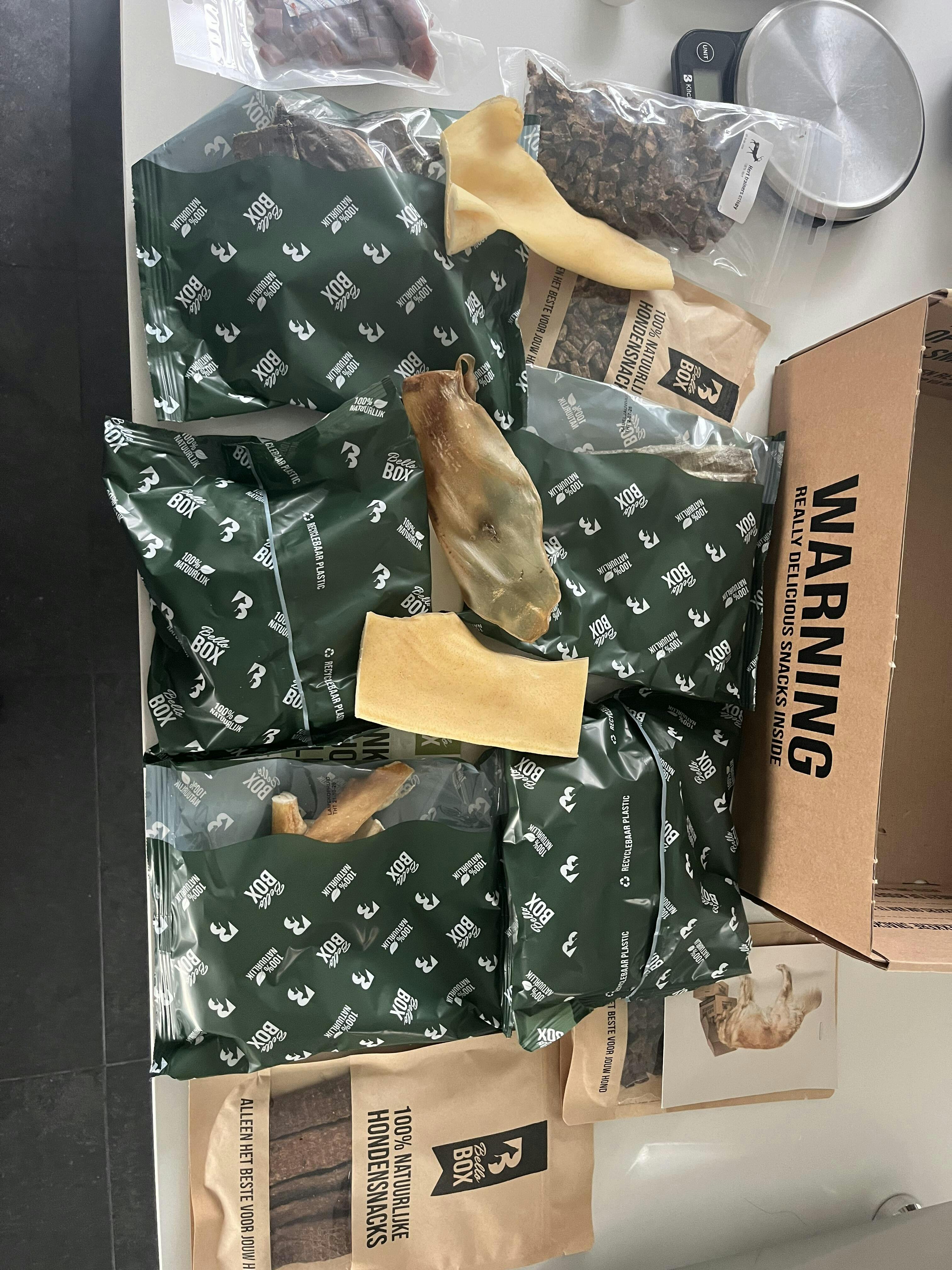 Alle snacks zijn 100% natuurlijk, bevatten geen onnatuurlijke geur-, kleur- en smaakstoffen. De hondensnacks zijn bovendien granen- en glutenvrij. Naast deze hondensnacks bevat de doos ook nog een leuke knuffel en een poepzakhouder met zakjes.