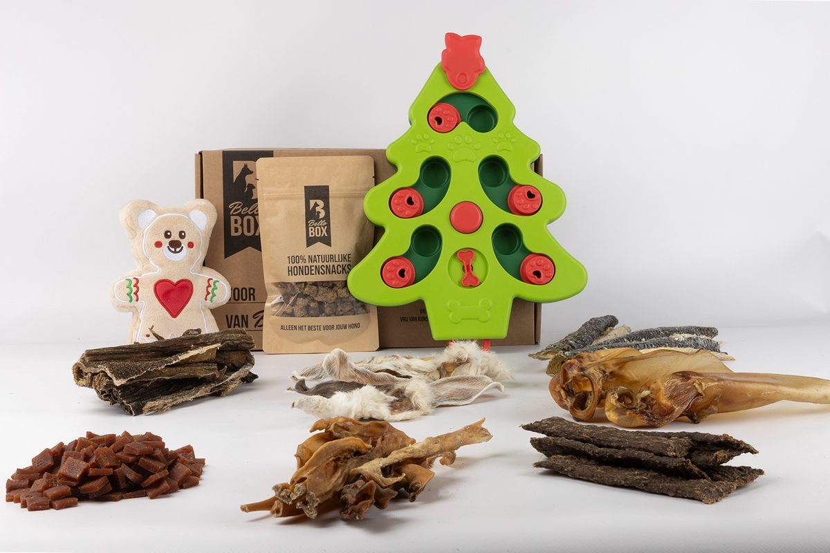 De box bevat (belonings)snacks en niet al te harde kauwproducten om het voor iedere hond leuk te houden. Wil je toch ook graag hardere kauwproducten in jouw box, dan kun je kiezen voor onze doorbijters variant. Liever een hypoallergene variant? Ook dat hebben we voor de Themabox mogelijk gemaakt.