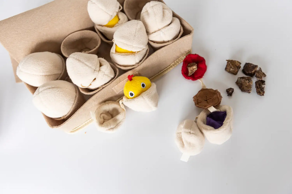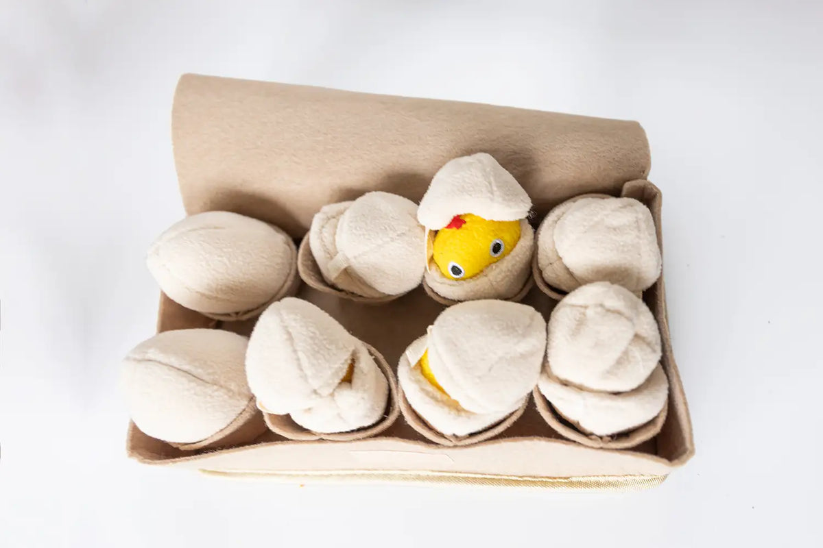 - Je hond zal voor langere tijd vermaakt worden terwijl hij actief op zoek gaat naar zijn favoriete traktaties in de eierdoos.