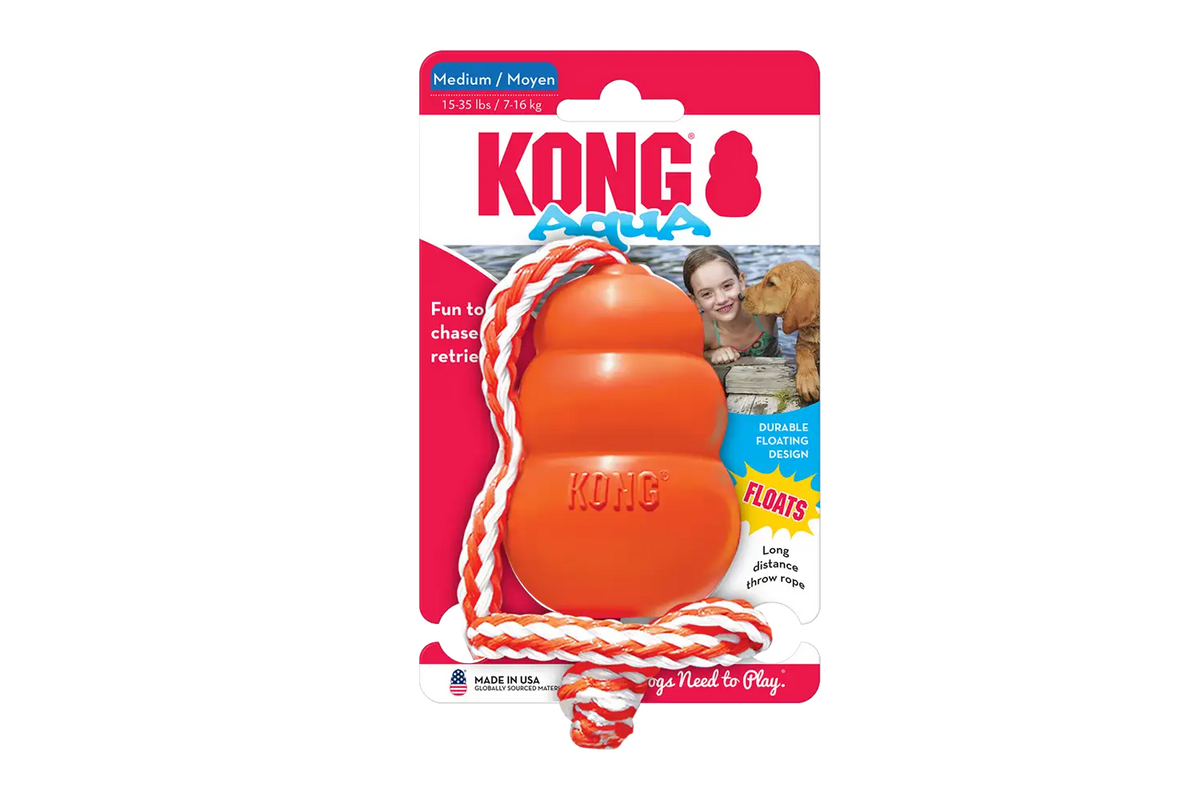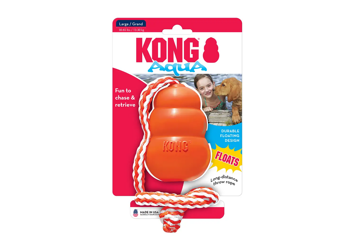 De KONG Aqua nodigt uit tot spelen met zijn duurzame oppervlak en levendige kleur. Dit hondenspeelgoed heeft een klassieke KONG-vorm met een touw voor extra speelplezier. In het speeltje zit een schuimkern die ervoor zorgt dat het blijft drijven, ideaal voor waterpret. Dit maakt het hondenspeelgoed heel aantrekkelijk voor zowel land- als wateractiviteiten. Keuze uit 2 formaten Medium (5-15 kg) voor middelgrote honden en Large (15-30 kg) voor grotere hondenrassen