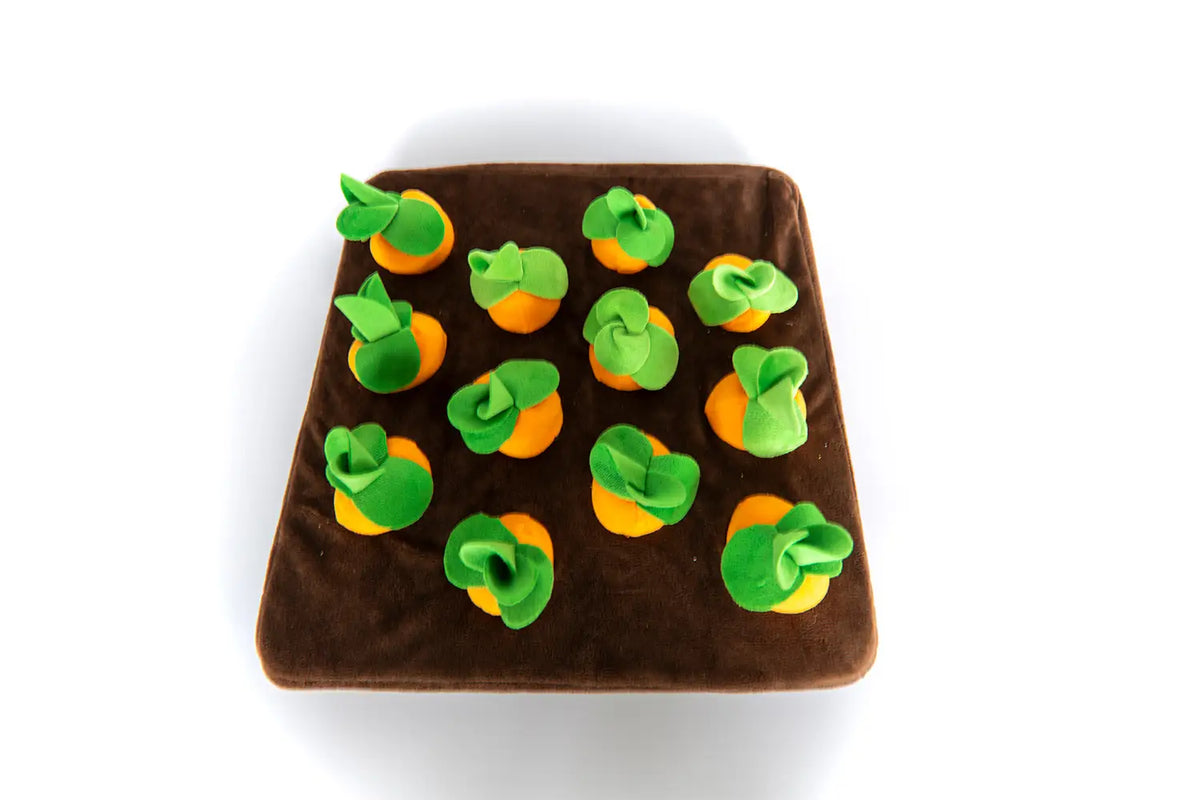 Deze veelzijdige snuffelmat in de vorm van een wortelveld is geschikt voor honden en puppy's van alle leeftijden. Het is gemaakt van zachte materialen en kan worden gebruikt voor reuktraining en als speelgoed. De mat helpt huisdieren langzamer te eten, mentaal gestimuleerd te worden en stress te verminderen.