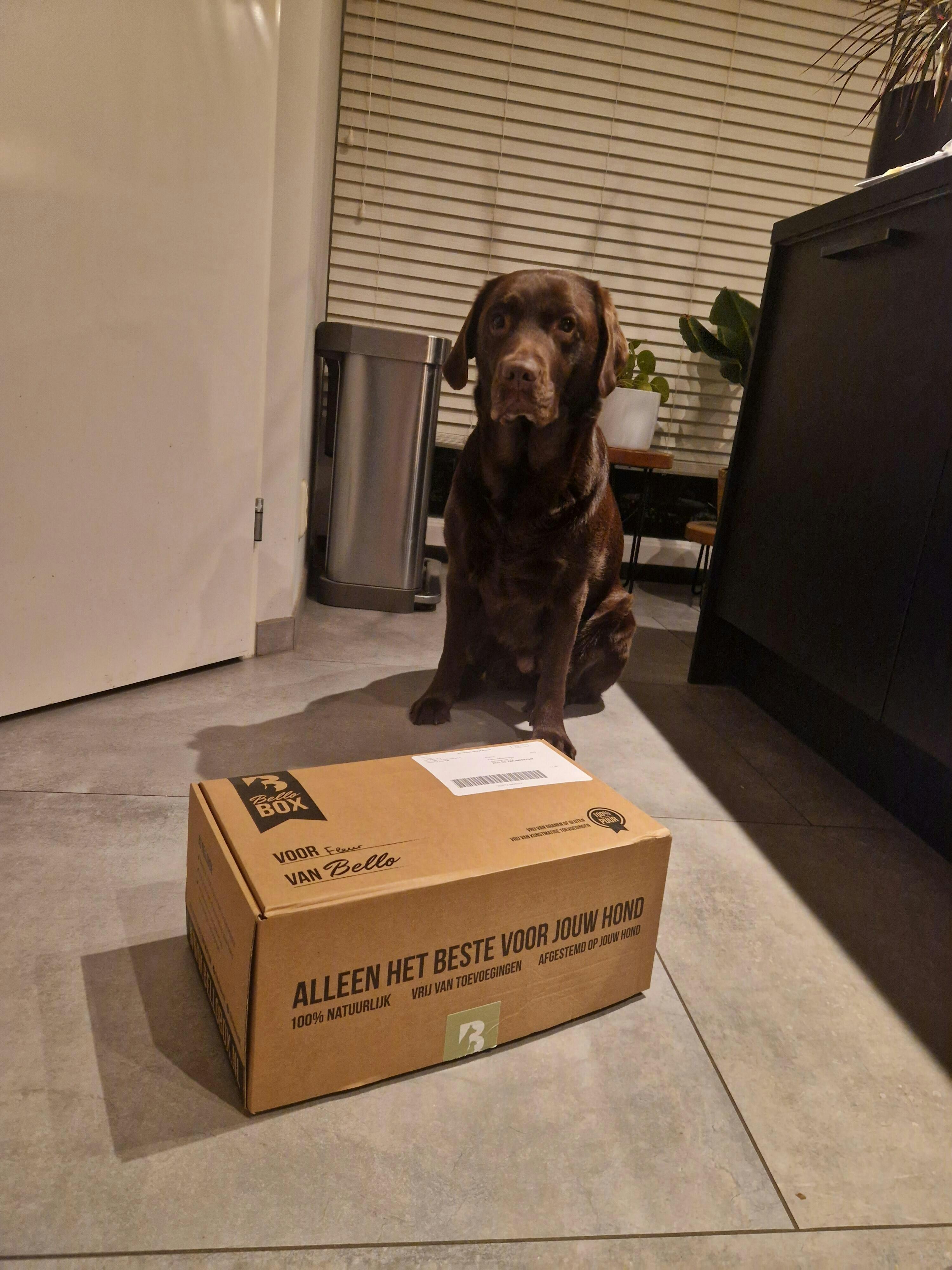 De box bevat honden kauwsnacks gemaakt van geit, paard, kameel en konijn en andere "vreemde" eiwitten waar veel honden niet allergisch voor zijn.