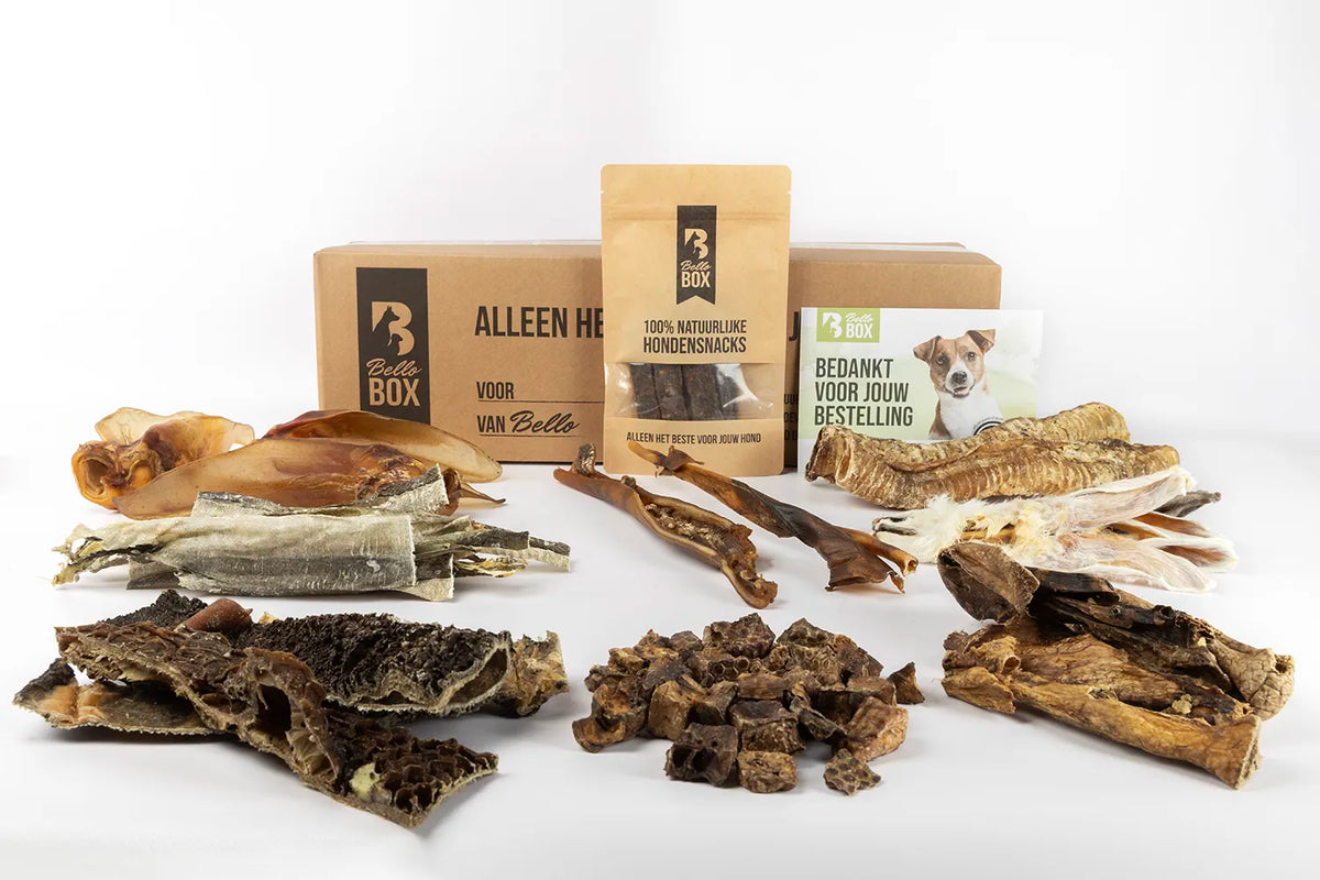 Let op: deze box bevat veel producten van rund, mocht in verband met allergie of intolerantie dit niet geschikt zijn, kijk dan naar onze hypoallergene boxen